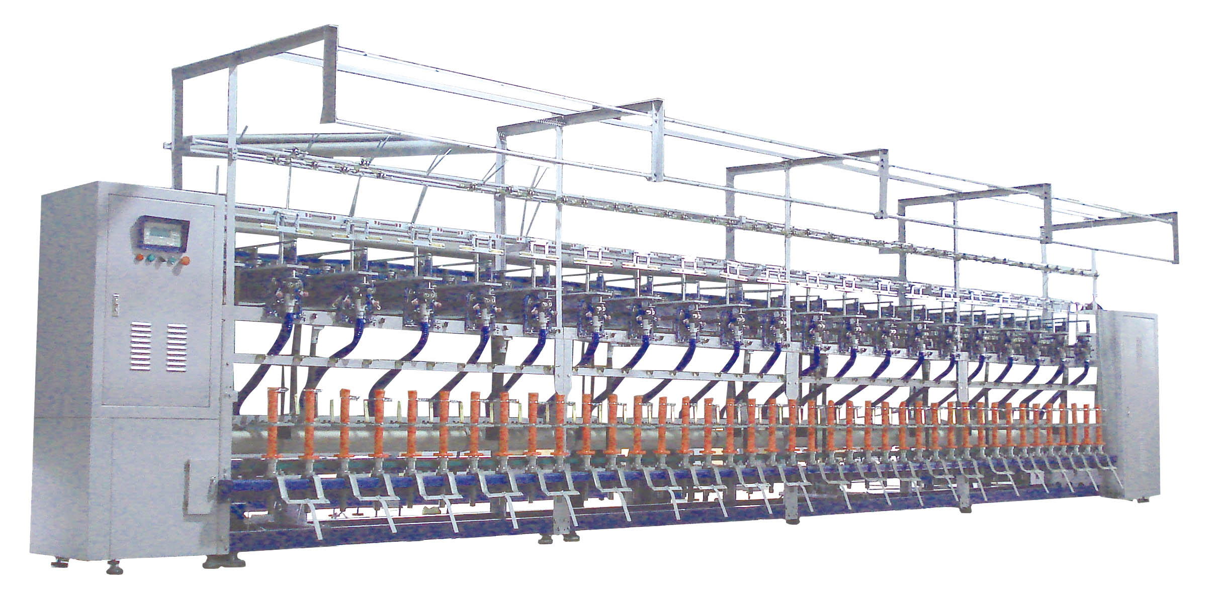 本機(jī)飾線,芯線,環(huán)錠均由獨(dú)立電機(jī)驅(qū)動(dòng), 其成紗工藝參數(shù)可通過人機(jī)界面, PLC, 變頻器來進(jìn)行設(shè)定, 控制, 執(zhí)行.