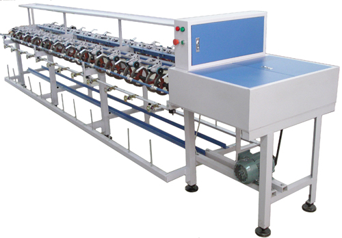 產(chǎn)品用途 本產(chǎn)品是我公司系列花式捻線(xiàn)機(jī)的配套輔助設(shè)備。用于生產(chǎn)押線(xiàn)卷裝,該卷裝置于中空錠錠桿上隨中空錠高速旋轉(zhuǎn),將押線(xiàn)以纏繞的方式加捻再由芯線(xiàn)和飾紗形成的花式紗線(xiàn)外部來(lái)固定已形成的花式效應(yīng)。 主要規(guī)格 錠數(shù):24 錠距:325mm 卷繞最大動(dòng)程:177mm 主電機(jī):Y2-80M1-4 0.55KW , 1400RPM 24V直流減速電機(jī)4GN6OB 外形尺寸:5000mm*950mm*1260mm 總重量:約800KG |